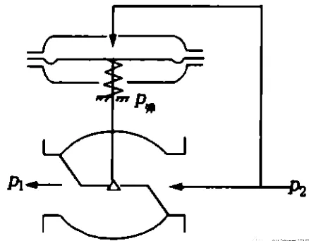 阀前压力P?经由阀芯、阀座的节约后,变为阀后压力P? 。P?经由管线输入上膜室内作用在顶盘上,爆发的作用力与弹簧的反作用力相平衡,决议了阀芯、阀座的相对位置,控制阀后压力 。当P?增添时,P?作用在顶盘上的作用力也随之增添 。此时,顶盘上的作用力大于弹簧的反作用力,使阀芯关向阀座的位置 。这时,阀芯与阀座之间的流通面积镌汰,流阻变大,P?降低,直到顶盘上的作用力与弹簧反作用力相平衡为止,从而使P?降为设定值 。同理,当P?降低时 。作用偏向与上述相反,这就是阀后压力调理的事情原理 。